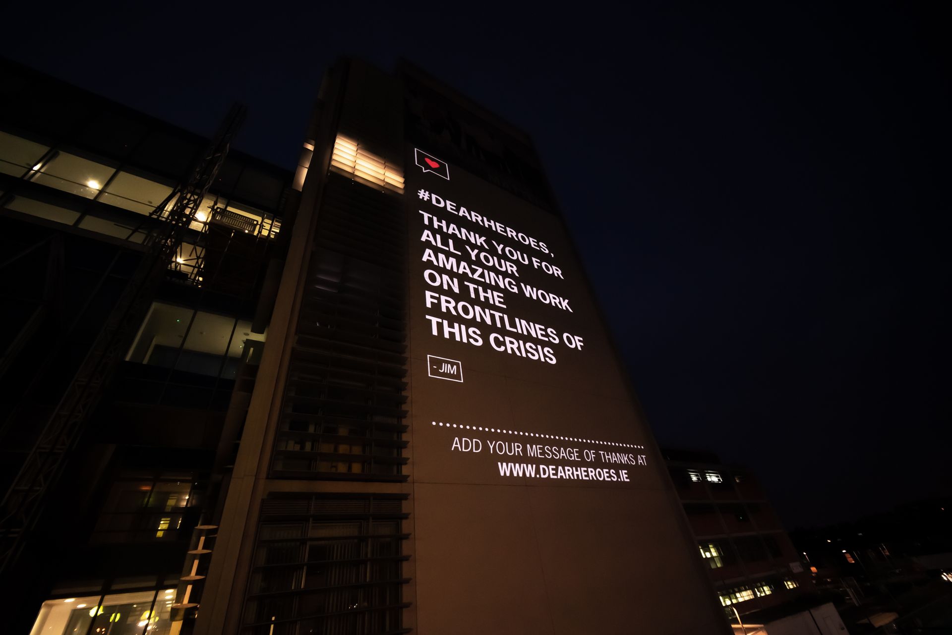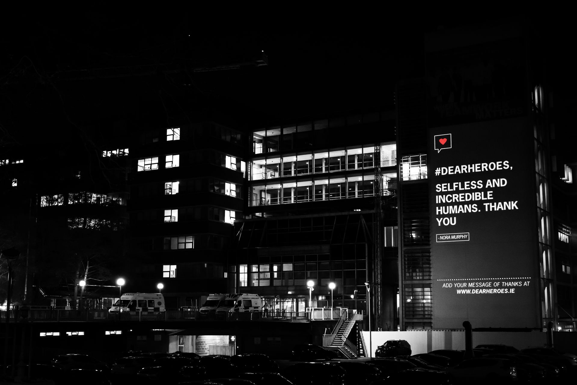 At the start of the COVID-19 lockdown, with live events and festivals on hold, Algorithm Productions launched a heartfelt initiative to uplift frontline healthcare workers. The project invited the public to submit messages of support, which were then projected onto the side of the Mater Hospital in Dublin as a nightly display of solidarity and gratitude.