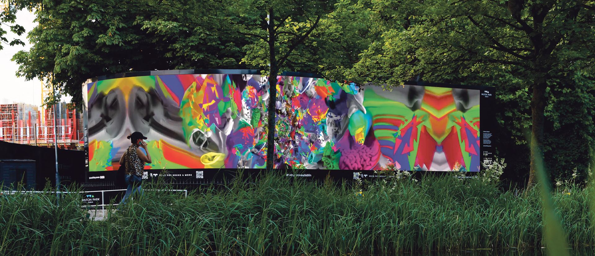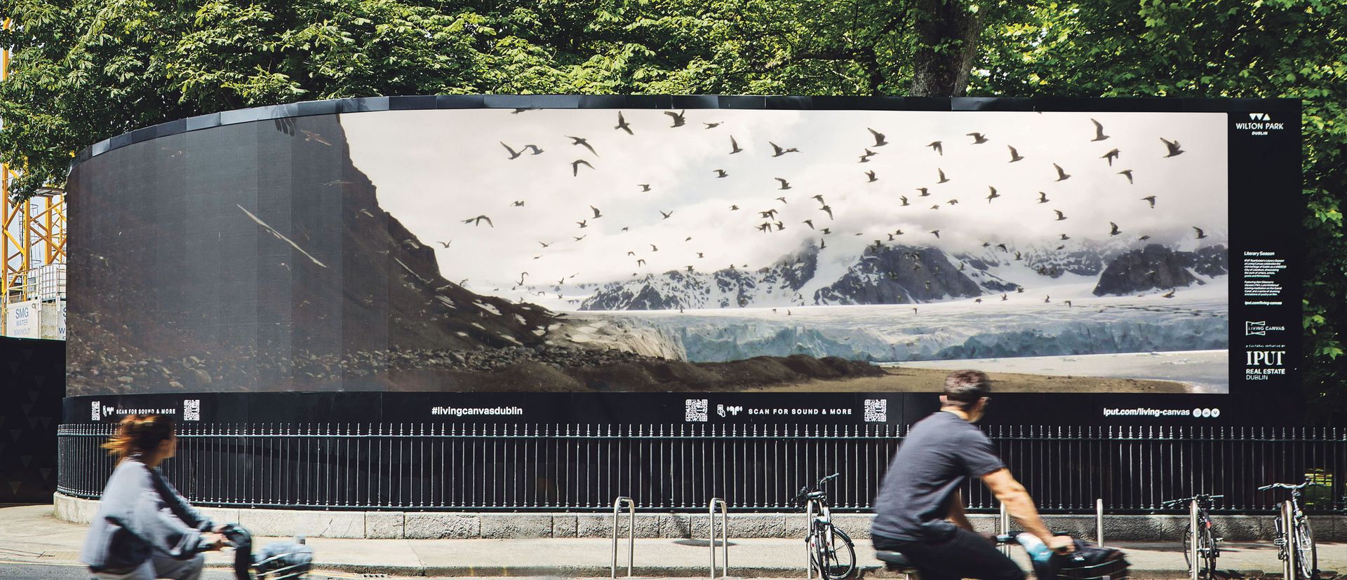 Living Canvas is a large-scale, curved LED installation located along the canal at Wilton Park, designed to showcase the work of Irish visual and sound artists in a public, urban setting. The screen acts as a living digital gallery, cycling through curated pieces that bring art into everyday spaces.