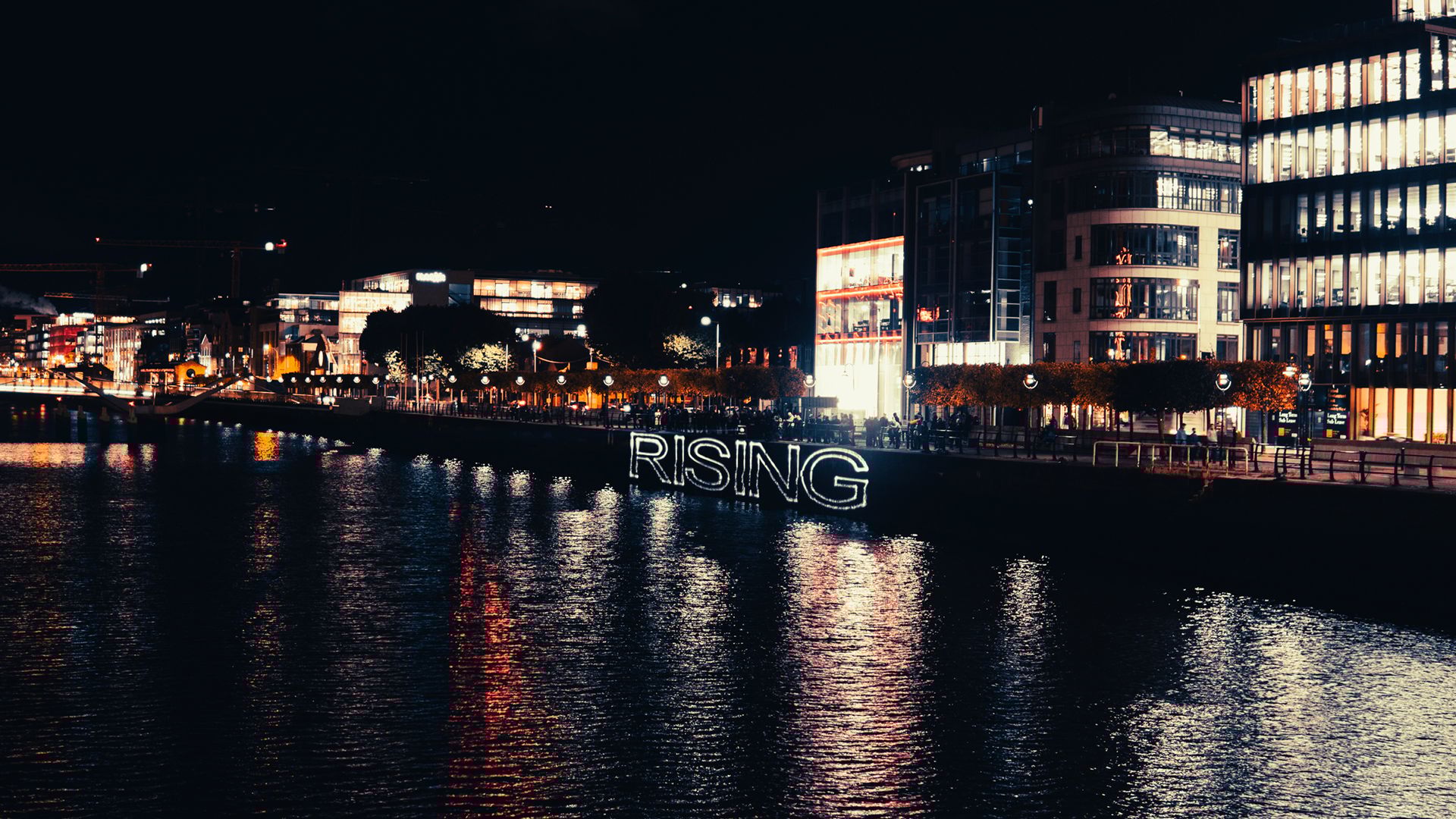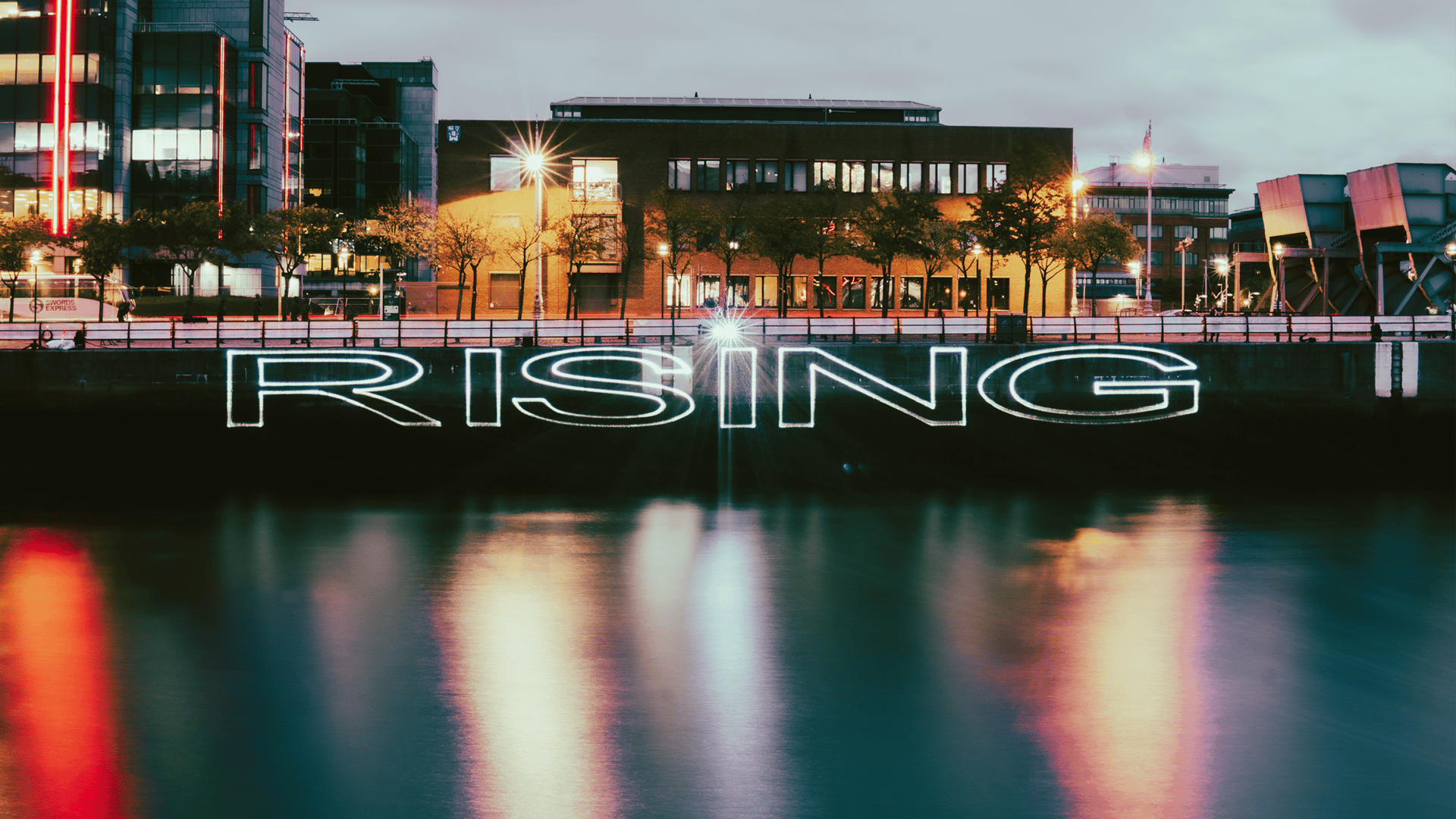 Rising was a collaborative project with Broken Talkers for the Dublin Theatre Festival, designed as a powerful visual and audio installation on the River Liffey to raise awareness about the threat of rising sea levels. The piece combined immersive sound design, animated laser graphics projected onto the riverside walls, and a dynamic light show across the water.