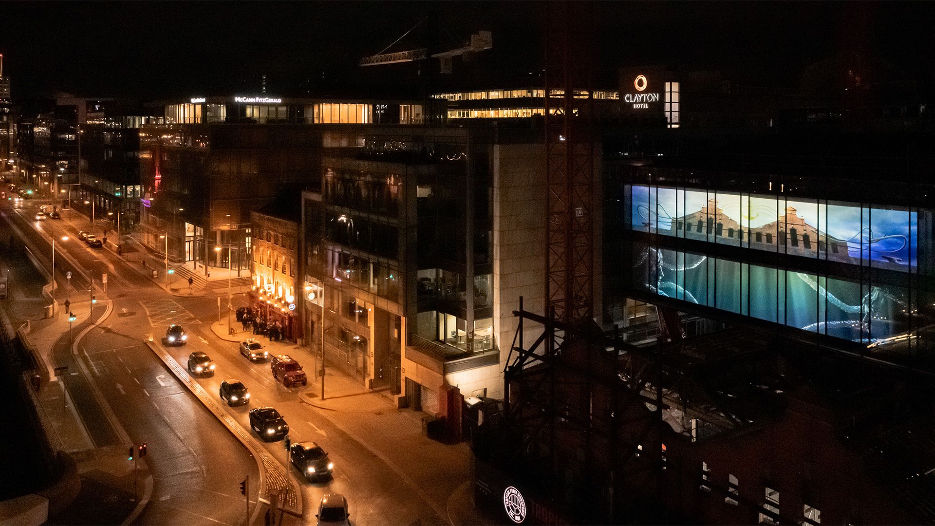 As part of the Living Canvas public art initiative for IPUT Real Estate, Where Glass Meets Water transformed the two-story glass structure atop the newly developed Tropical Fruit Warehouse in Dublin into a monumental projection surface. This temporary installation combined innovative display technology with striking digital art, turning the building itself into a living canvas.
